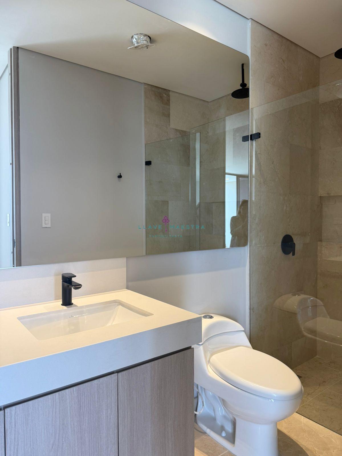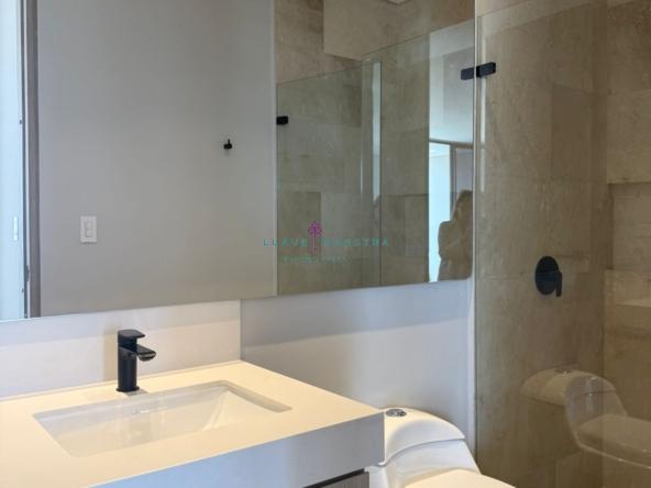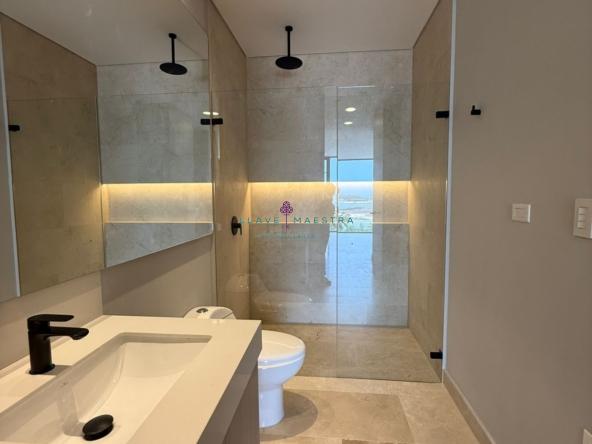 Además, cuenta con un espacioso walk-in closet, aires acondicionados (distrito térmico) en la habitación, y aire central en el área de sala – comedor, además de un parqueadero.