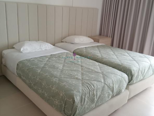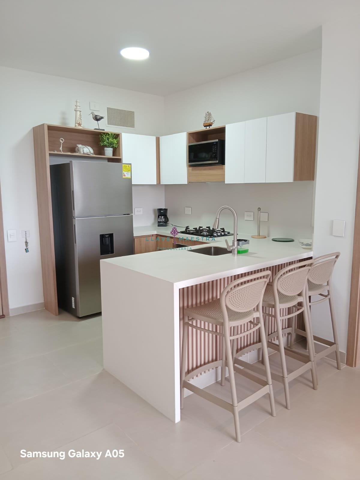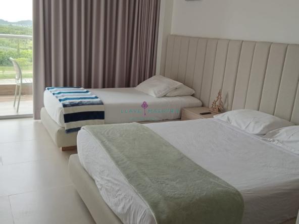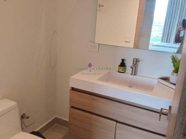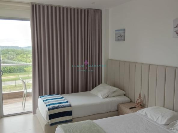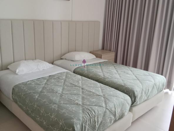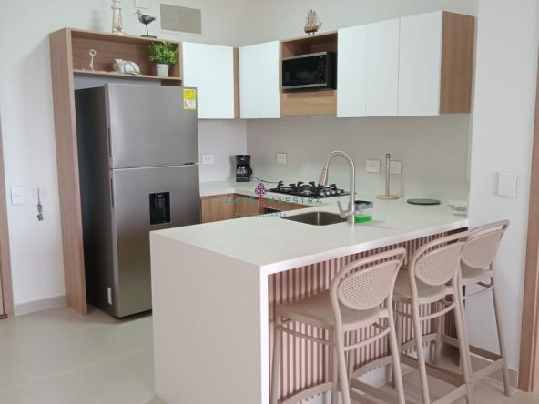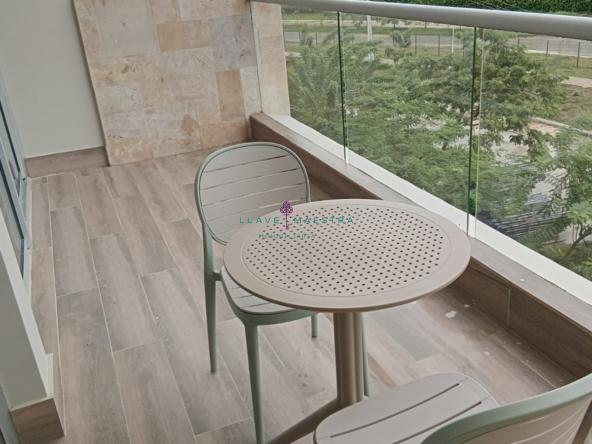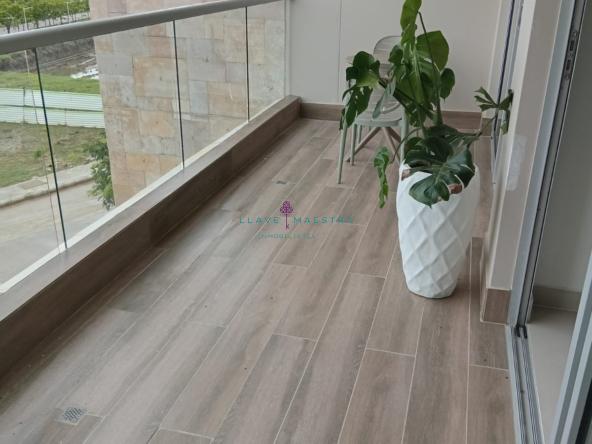 Tiene un área total de 110 mts2, y cuenta con tres (3) habitaciones (Walk In Closet en la habitación principal), tres (3) baños (un (1) baño social, dos(2) baños privados en las habitaciones, cocina integral tipo americana, sala – comedor, 2 terrazas (todos los cuartos tienen acceso a ella), zona de ropas, un (1) parqueadero, aires acondicionados convencionales en cada cuarto y dos (2) aires centrales en sala – comedor.
