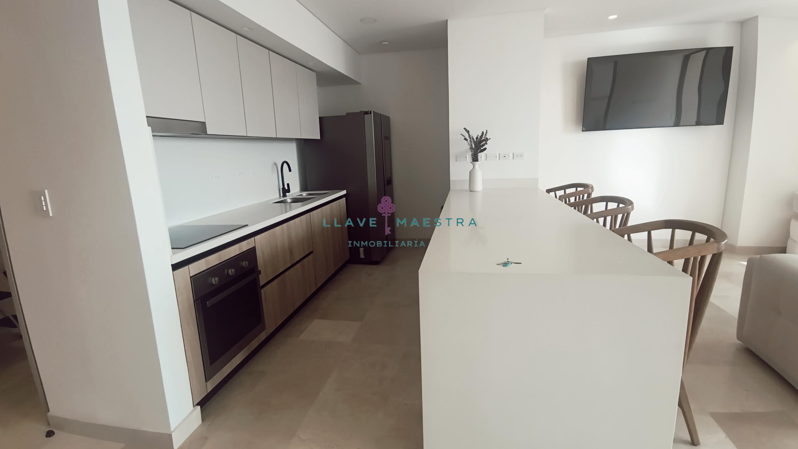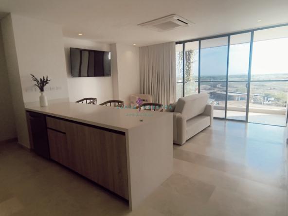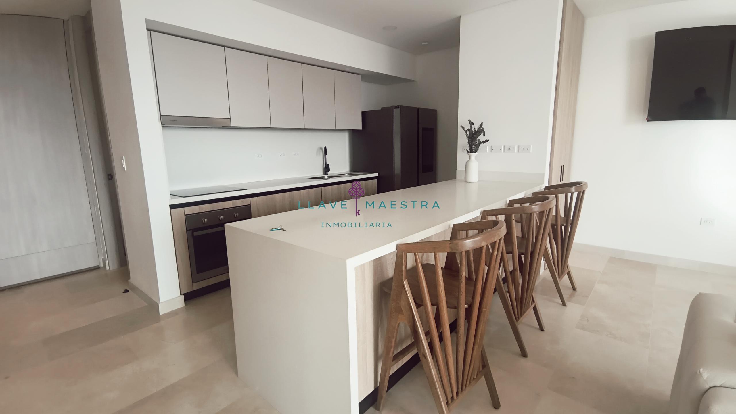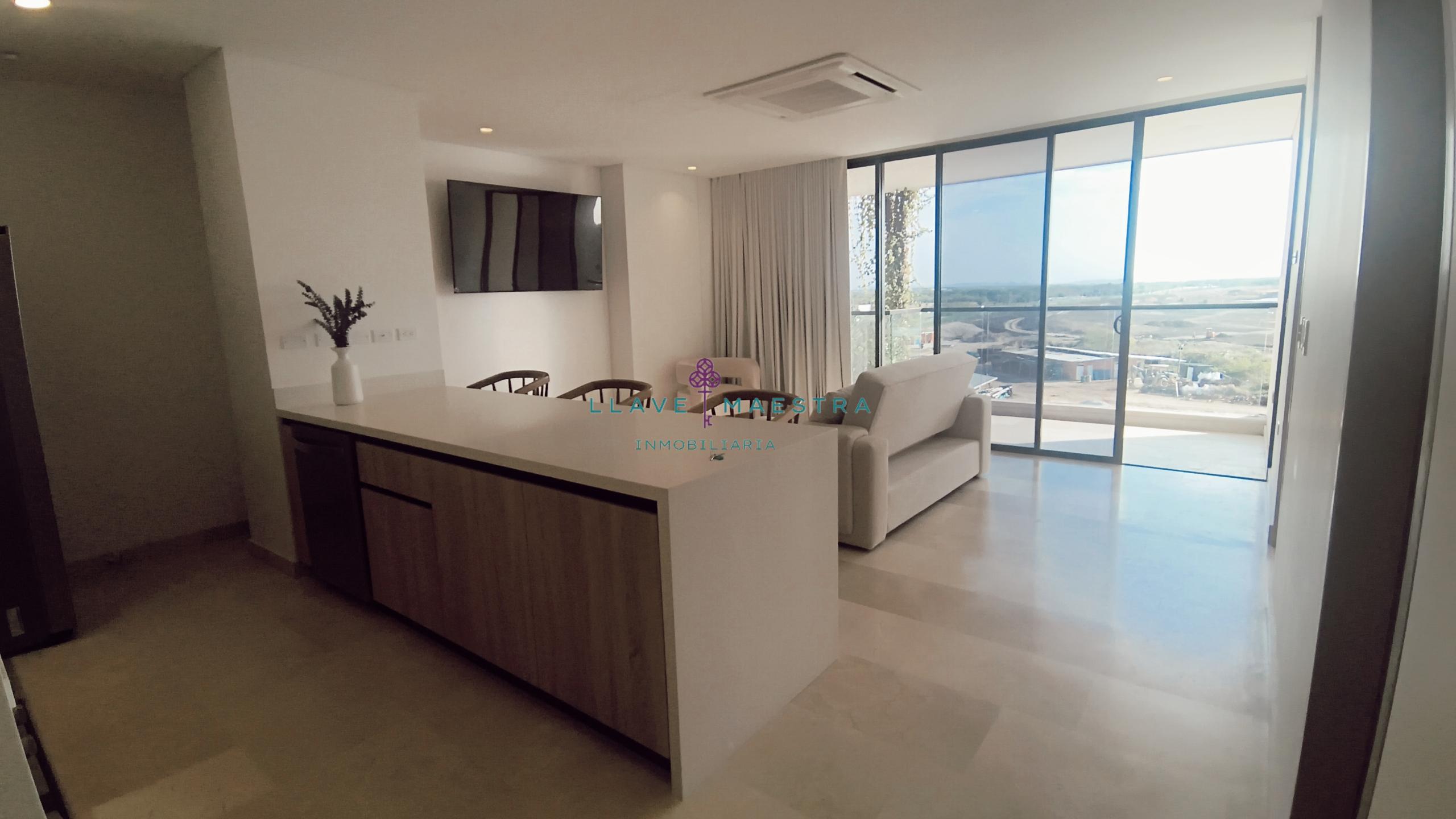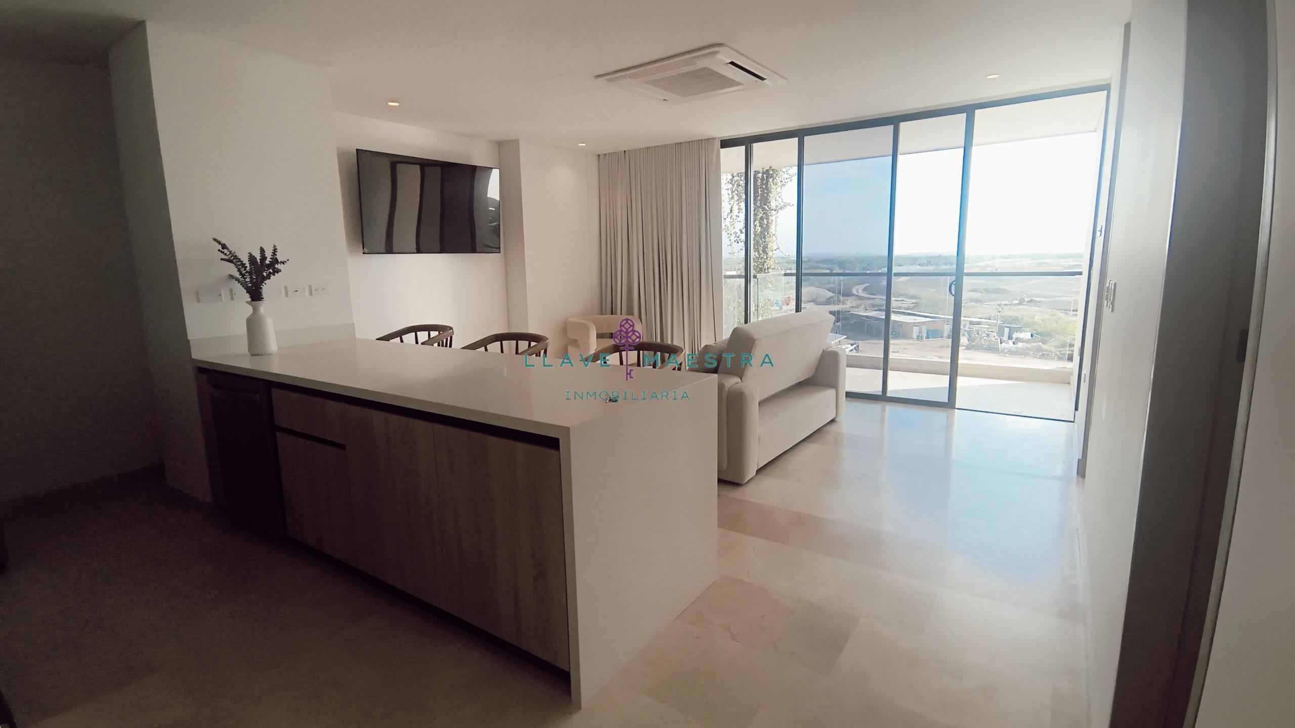 Lujoso apartamento de 85 m2 en Meraki Club & Residences, situado en Cartagena, Serena del Mar. Cuenta con un diseño moderno y sofisticado, con 1 habitación + estudio, amblado tal cual se ve en las fotos, cortinas eléctricas, una hermosa sala comedor y cuarto también con cortinas eléctricas cocina tipo americana con generoso espacio de almacenamiento, una zona de ropas independiente, y dos baños perfectamente distribuidos: uno privado en la habitación y otro para visitas.
