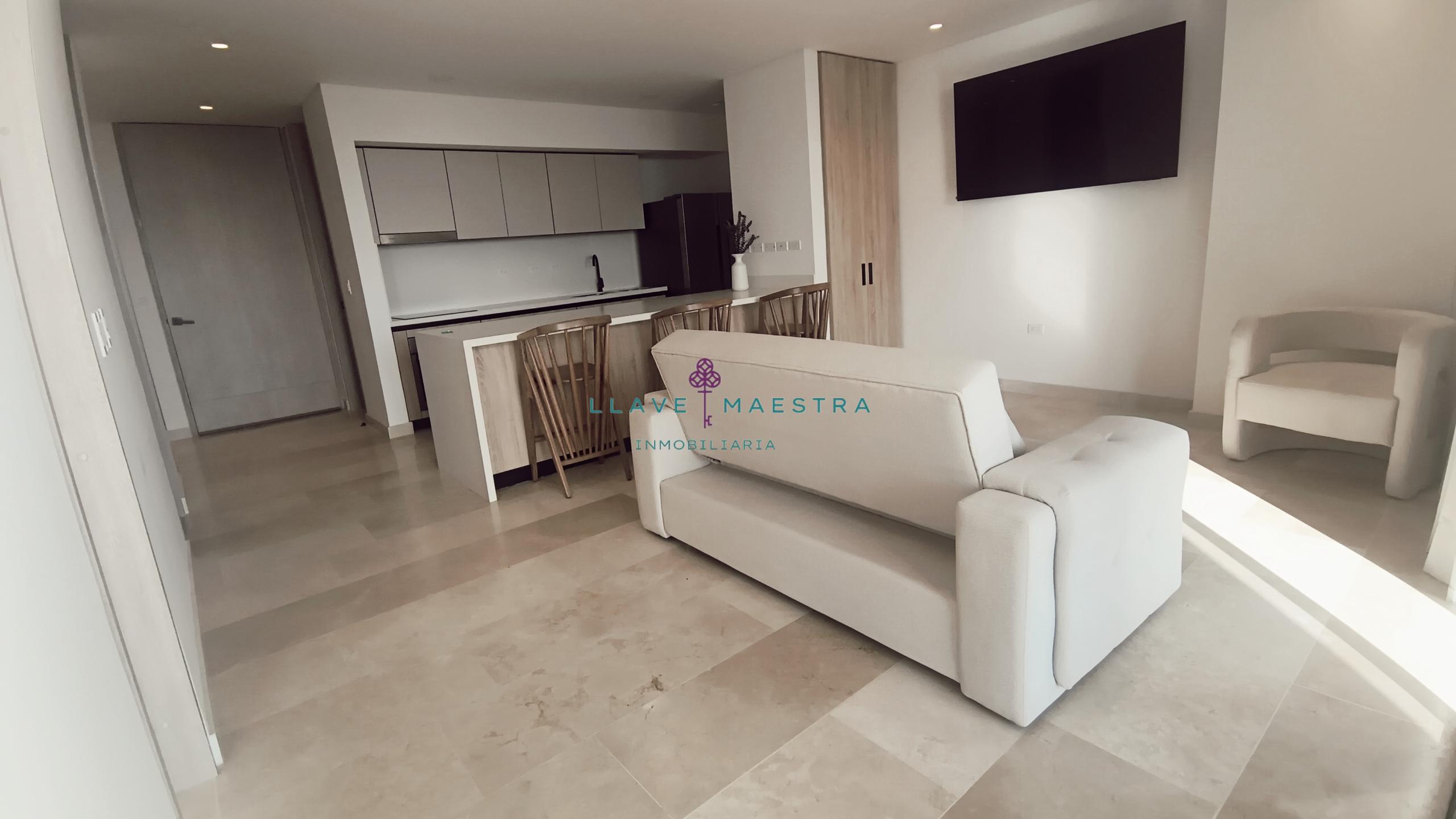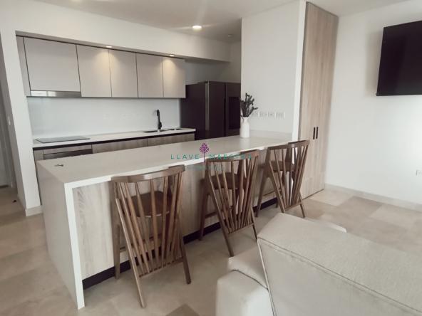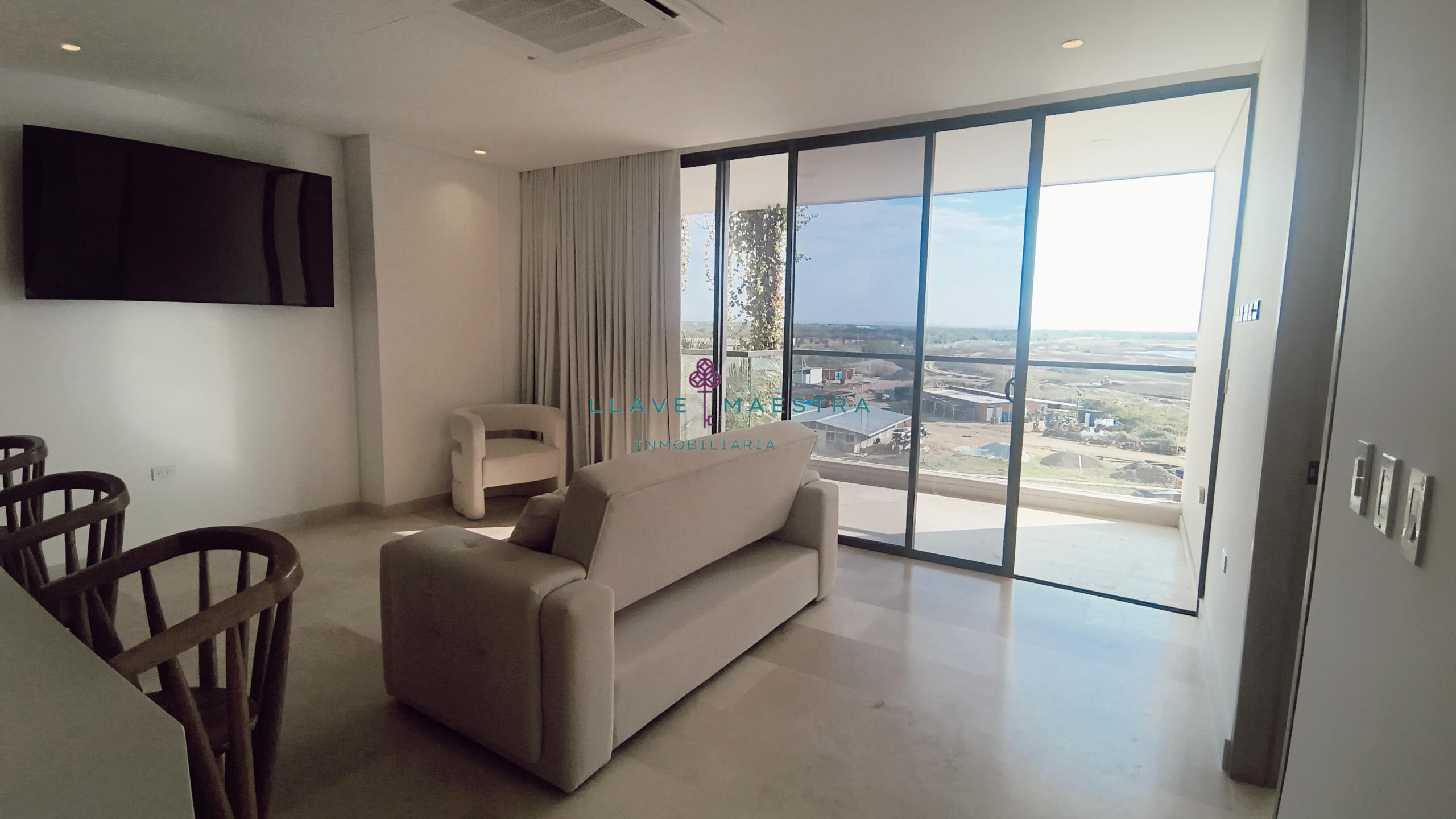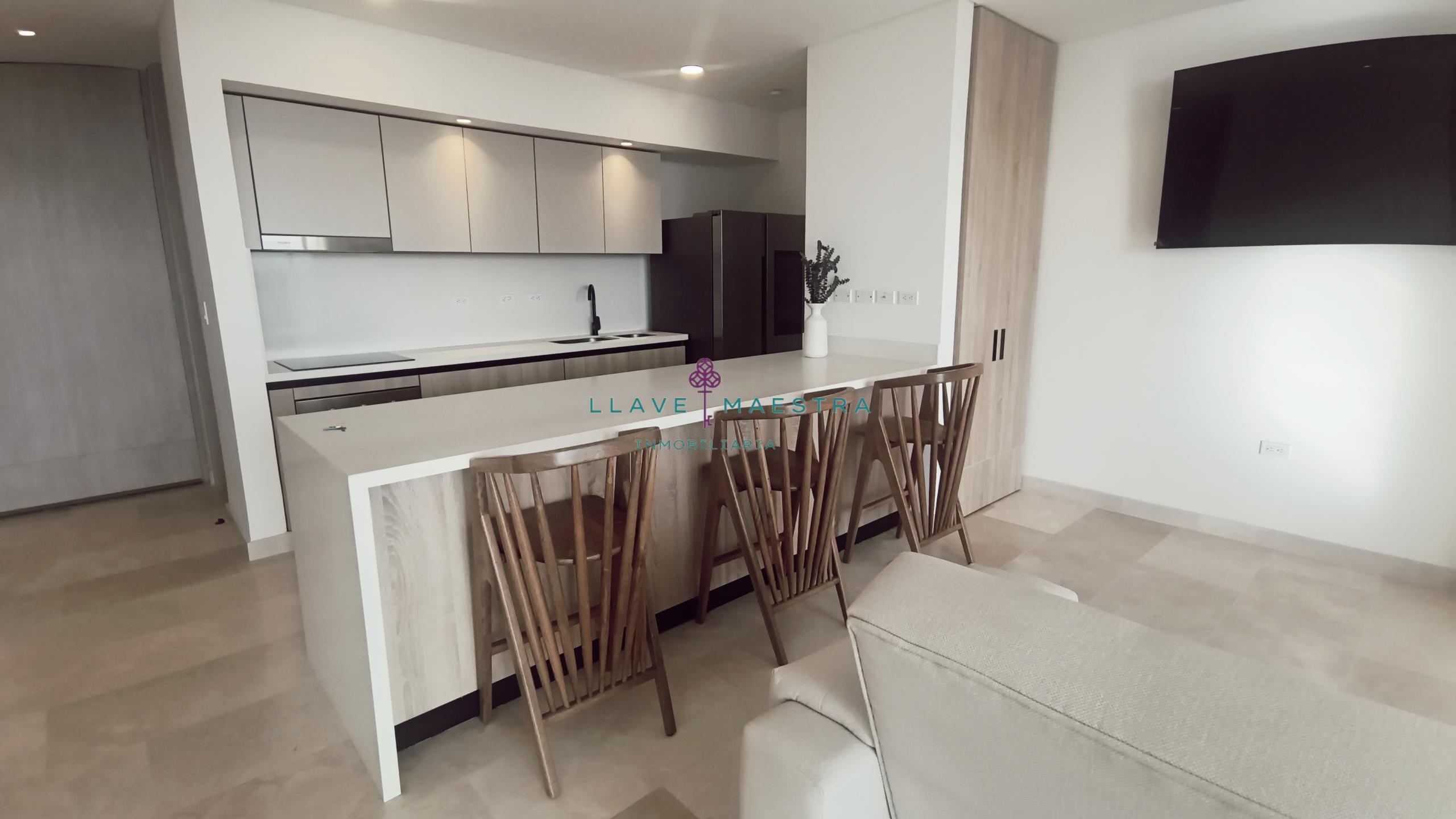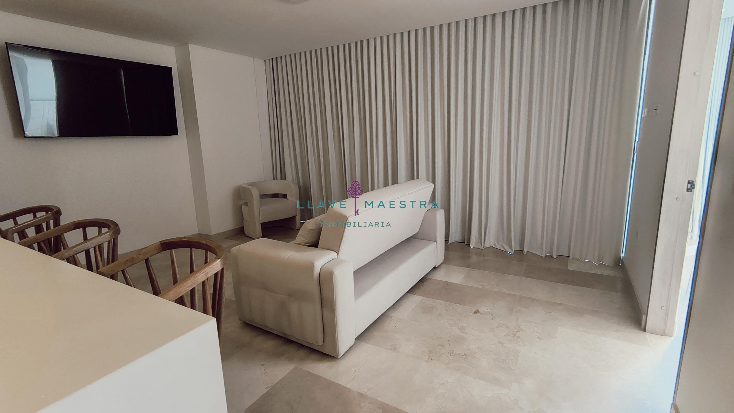 Lujoso apartamento de 85 m2 en Meraki Club & Residences, situado en Cartagena, Serena del Mar. Cuenta con un diseño moderno y sofisticado, con 1 habitación + estudio, amblado tal cual se ve en las fotos, cortinas eléctricas, una hermosa sala comedor y cuarto también con cortinas eléctricas cocina tipo americana con generoso espacio de almacenamiento, una zona de ropas independiente, y dos baños perfectamente distribuidos: uno privado en la habitación y otro para visitas.