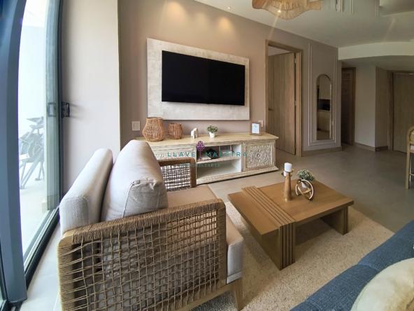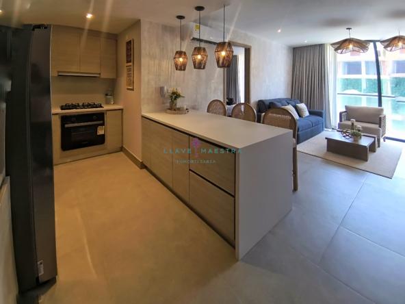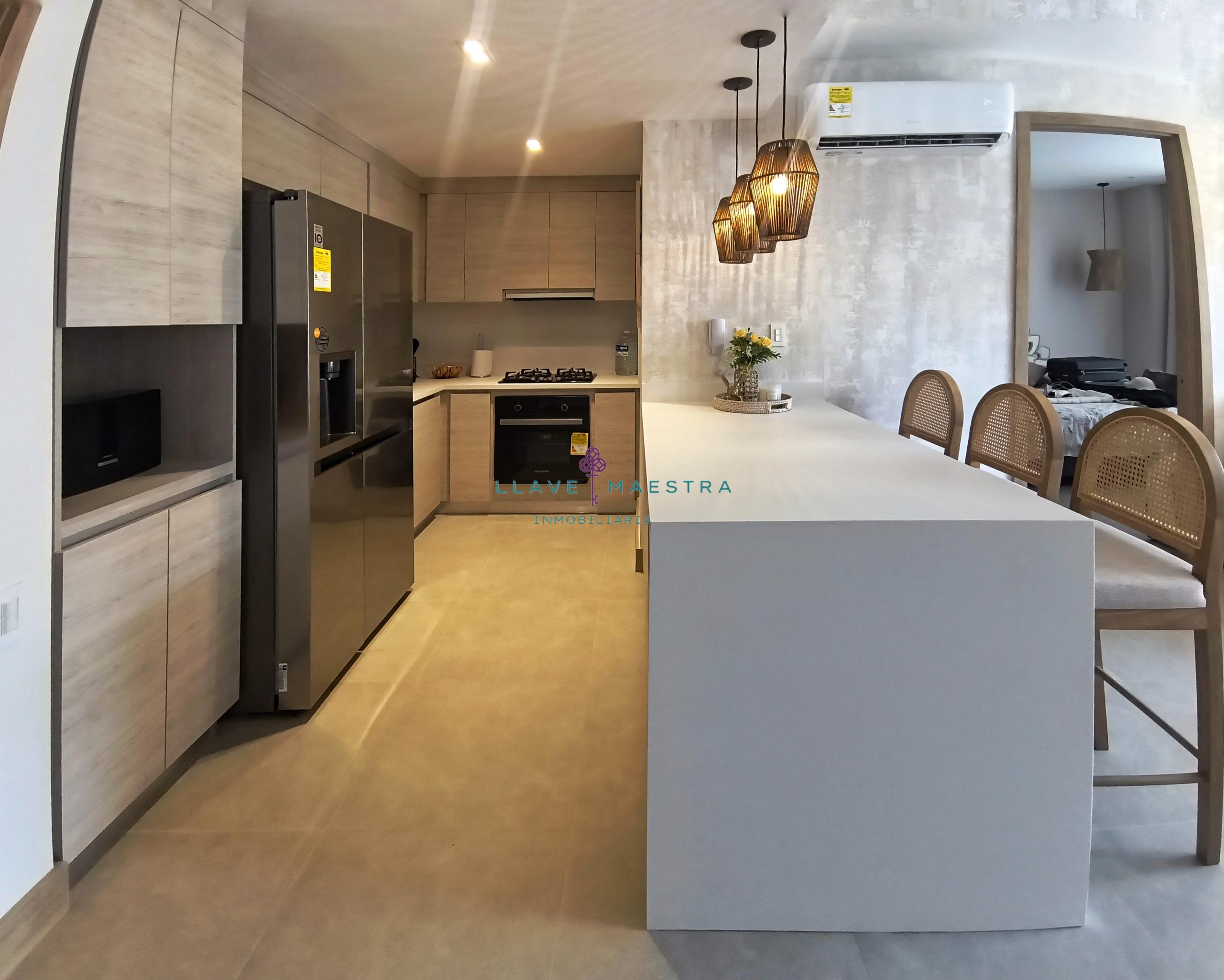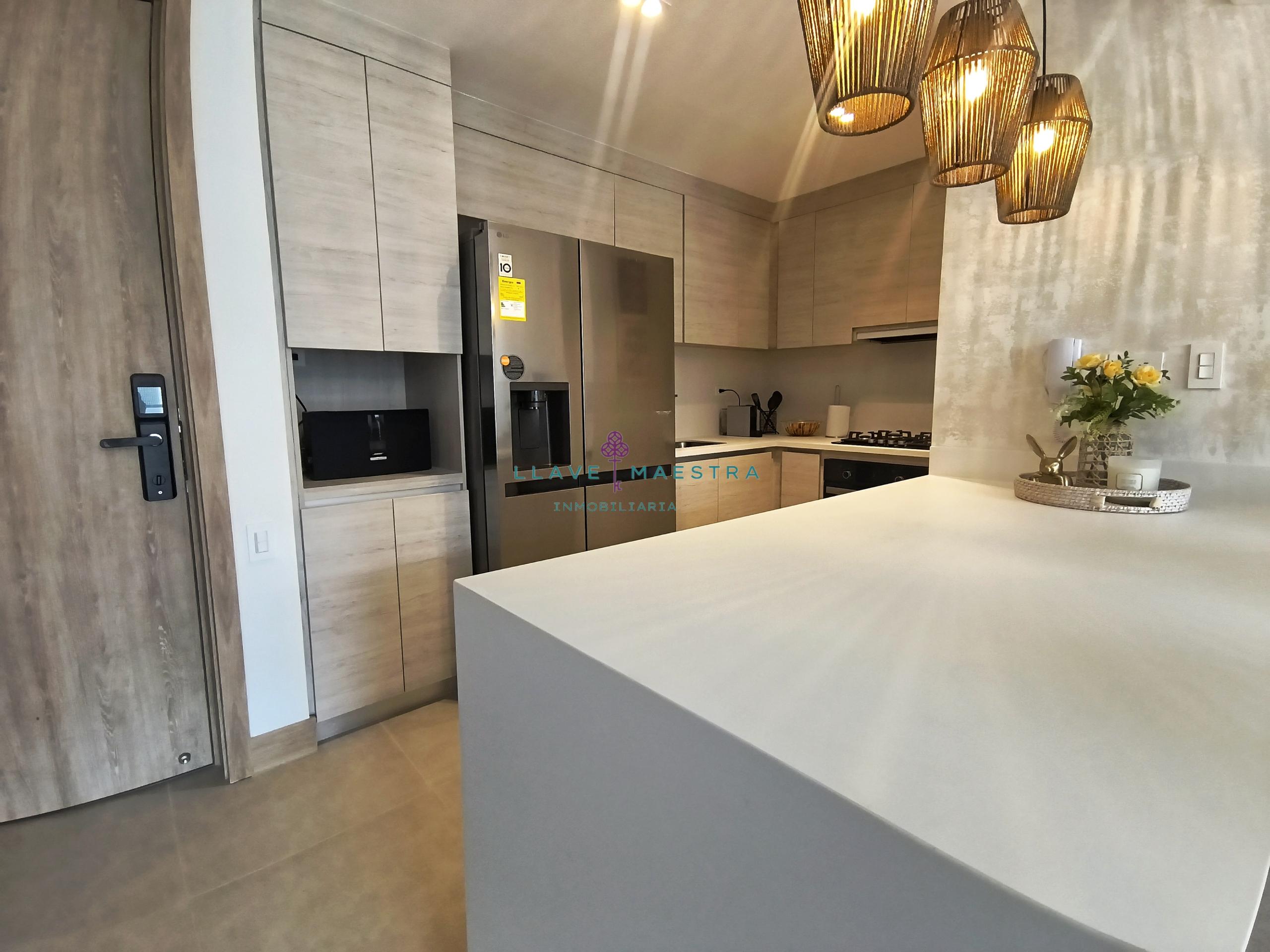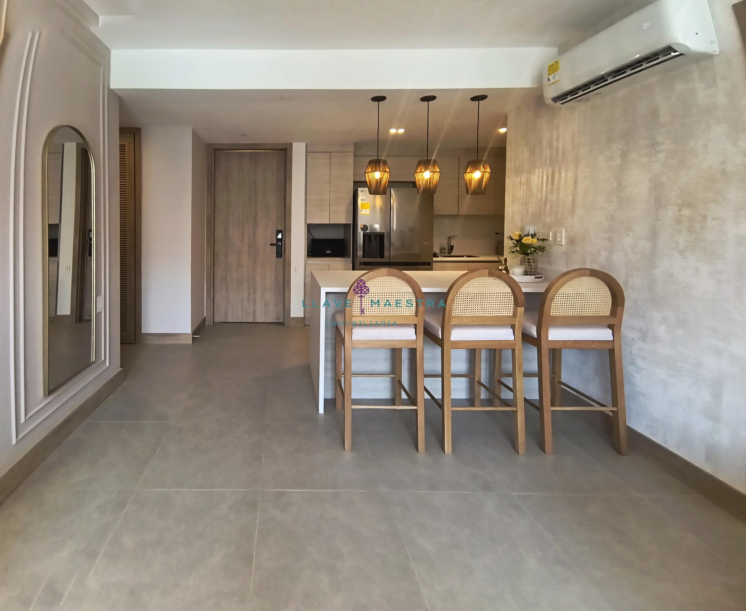 El área social está compuesta por una amplia sala – comedor, conectada con una cocina integral tipo americana completamente equipada, lo que brinda funcionalidad y comodidad para el uso diario.