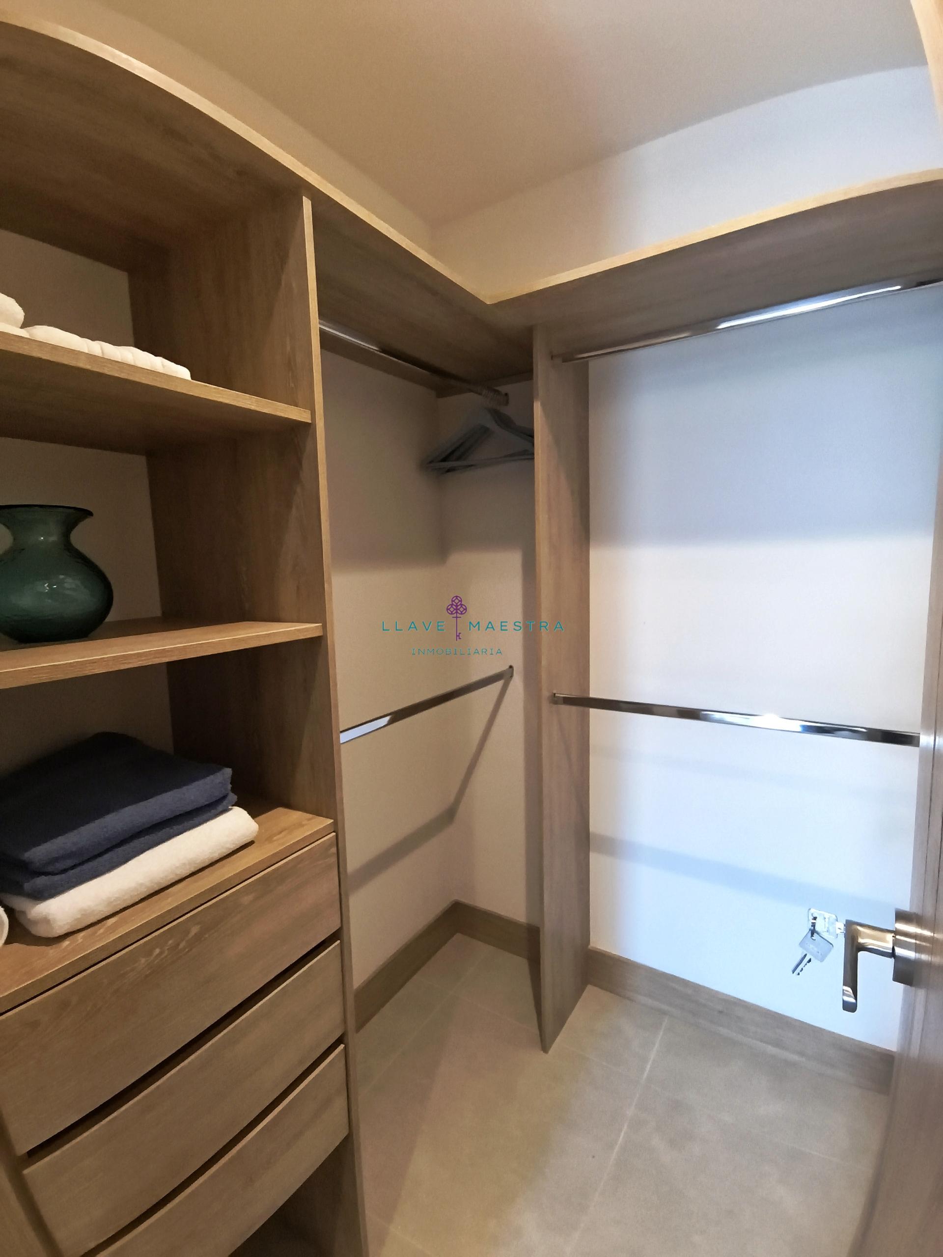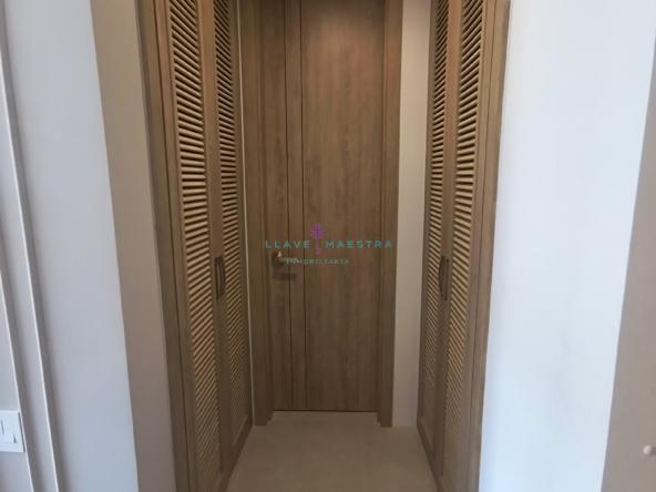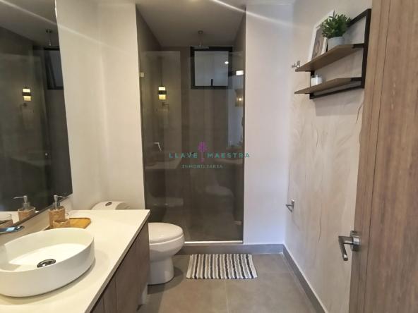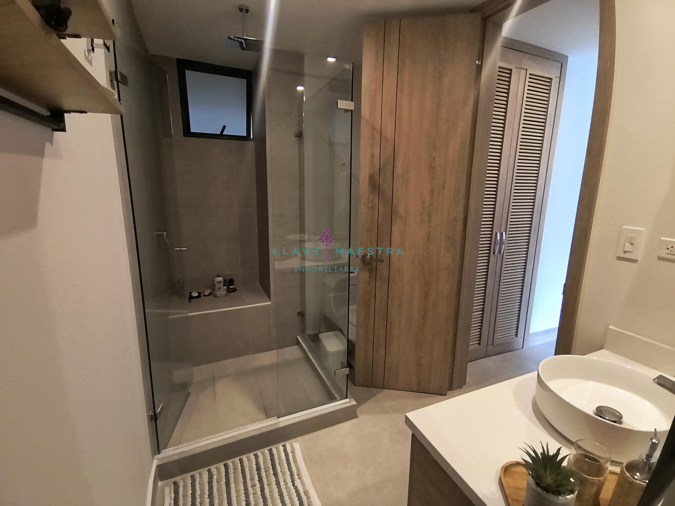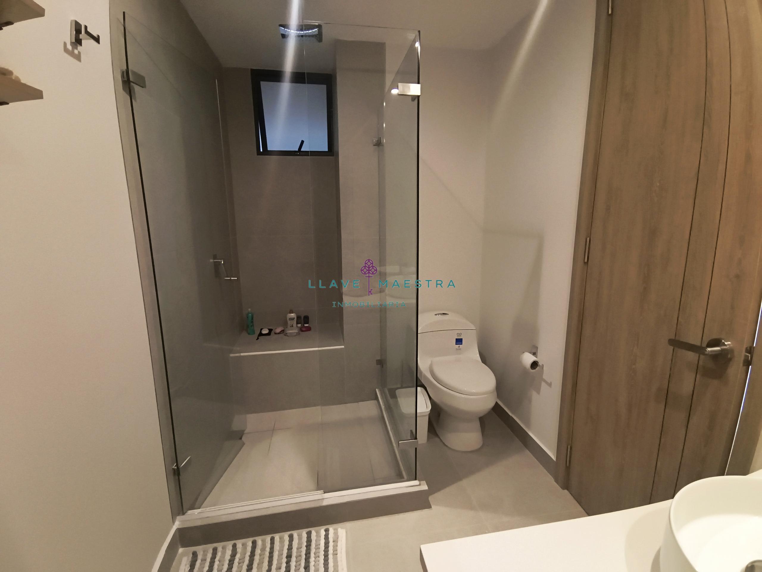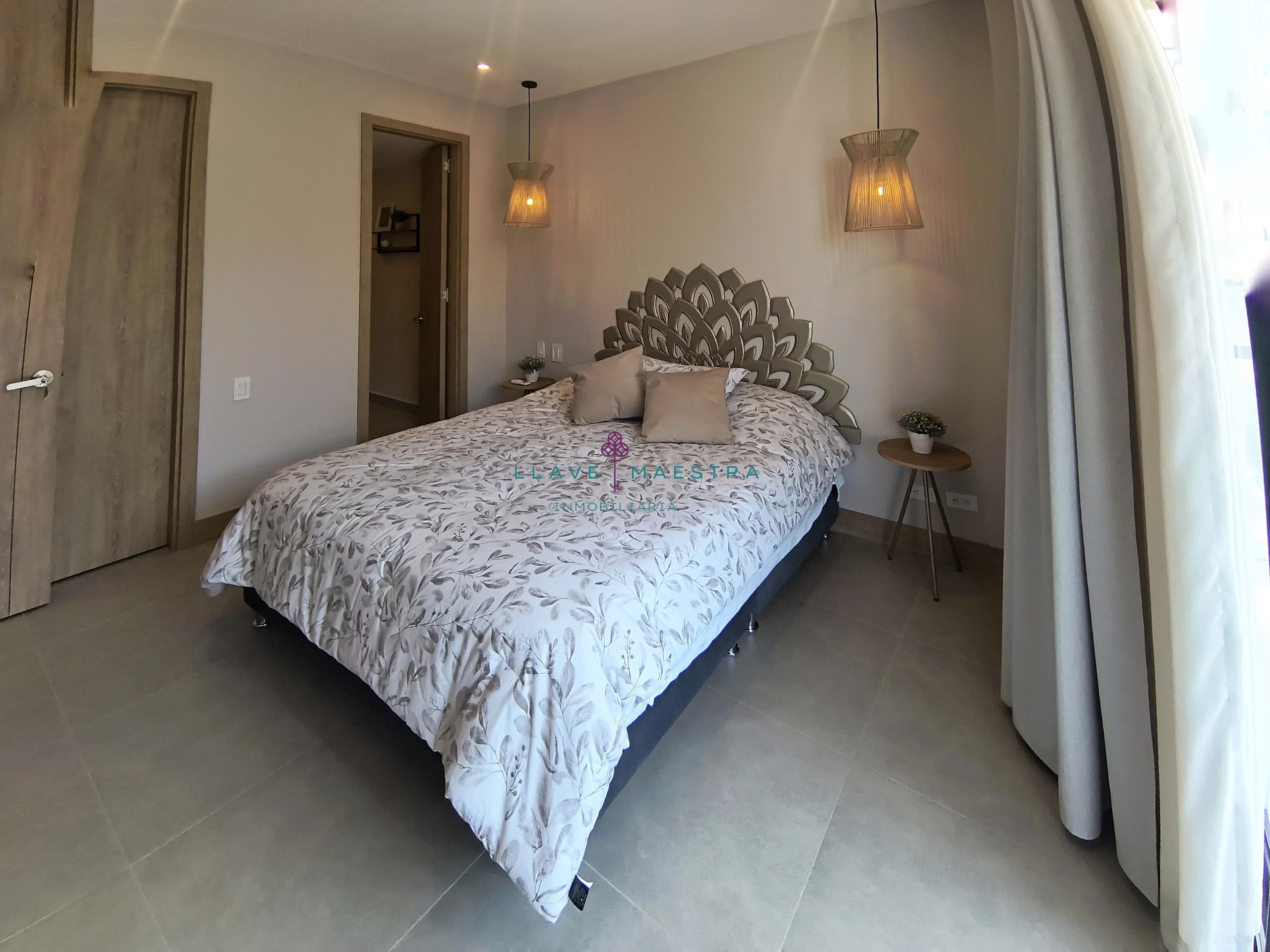 La habitación principal cuenta con baño privado y walk-in closet, mientras que la habitación auxiliar dispone de clóset, ofreciendo espacios cómodos para el descanso.