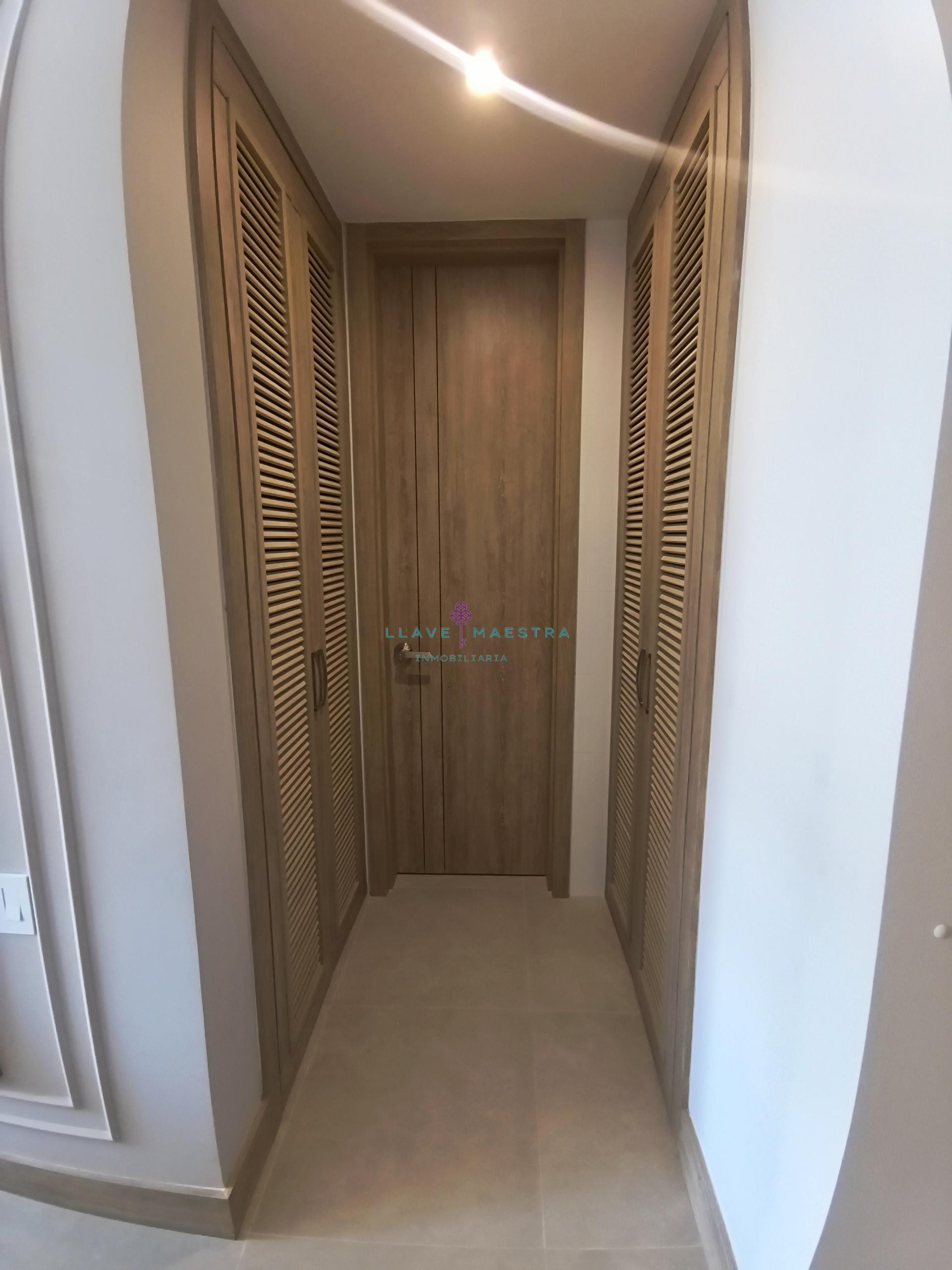 El inmueble ofrece espacios amplios y bien distribuidos, destacándose su balcón de gran tamaño con vista al mar y a la piscina del edificio, ideal para disfrutar del entorno y del clima característico de Cartagena. Tanto la habitación principal como la habitación auxiliar tienen acceso directo al balcón, lo que permite mayor iluminación natural y ventilación en las áreas privadas.
